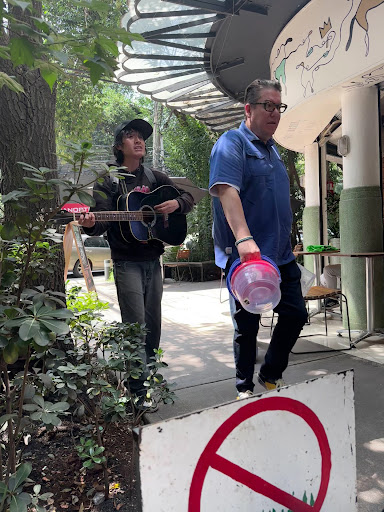 Since I arrived sort of early just before the noon hour, it wasn’t very crowded. In fact, I was able to sit at a little table right in front on the sidewalk. After I finished my second and final taco, a young man approached and started singing and playing guitar on the sidewalk. As other diners began showing up, I gave up my table rather than linger and enjoy the young troubadour’s offering.