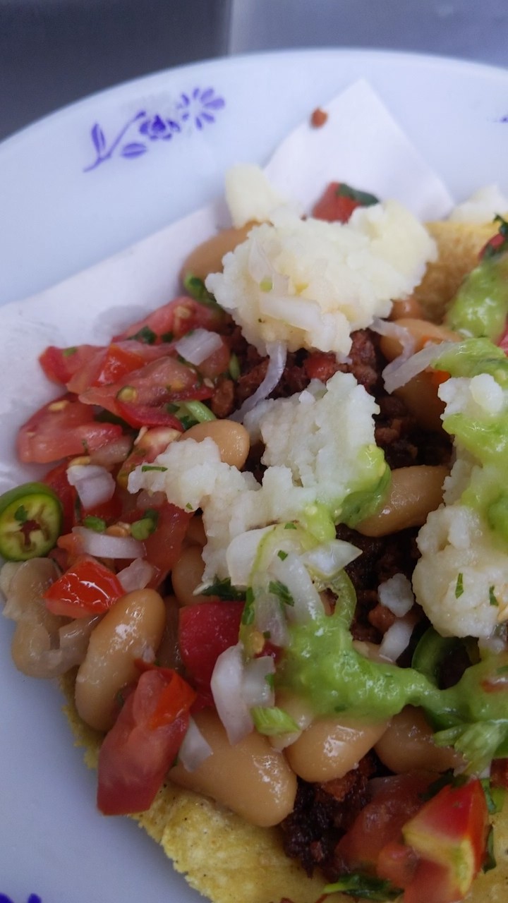 Some of the best tacos I've ever had. The toppings selection is incredible: nopales, mashed potatoes, pico de gallo, beans, guacamole, onions, and some others I can't remember. The tortillas are freshly made and well proportioned. Nice and thick, too. They don't have biggest meats selection but what they do have is very good, particularly bistec and longaniza. Drinks aren't too sugary either. Gets busy early, which adds to the charm of street food, but they are open late. Plenty of little tables around.