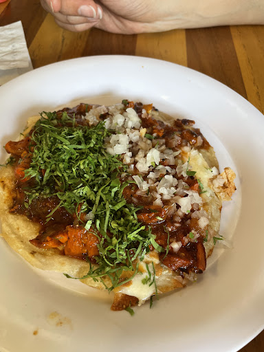 Read moreMuy mala experiencia. Io como extranjero se perfectamente que un verdadero taco tradicionale de este pais tan bello, no se come bajo el concepto de esta franquicia. Son muy esteriles y plasticos. El problema es el trafico en horas de comida y lo concurrido de la colonia. Por eso la gente de la zona se queda a comer ahi. Son dos ocasiones que he tenido horrible trato. En una ocasion pedi para portar a casa y mi orden llego incompleta.faltaron 3 tacos de pastor. En esta ocasion llegue y el valet parking quien es un niño de escasos 20 años aparta lugares. (Lo cual segun el reglamento de transito de esta ciudad lo tiene pohibido) Y me vio en doble fila esperando su apoyo y jamas me atendio, y el trafico sobre pilares en esas horas es muy complicado y hostil. Tomaron mi orden , Le expuse al manager mi experiencia anterior, y que pusiera atencion para recibir exactamente lo que estoy pagando; y es otro niño de escasos 25 años con muy poca facilidad de palabra, inmediatamente me pide el pago, me dijo que ignorara a los coches que pasaban y pitaban y que si queria buscar lugar. Esta vez mi orden estuvo completa. pero la comida horrible. Fueron dos tacos de bisteck, otros dos de bisteck con queso y 3 de pastor. El queso agrio, la carne de res con un sabor horrible, ni en los puestos sabe asi. y por esos 7 taquitos fueron casi 600 pesos. Es mas la mala experienza de pagar para comer asi, con un trato hostil de niños sin mucha experiencia, y el sabor de no saber cuanto tiempo ha estado congelada su comida... O peor, ni pensarlo. Eso molesta mas que el costo por 7 tacos. Un verdadero taco no es...
