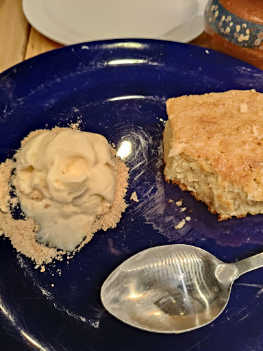 Pedí un pastel de elote con helado de macadamia como lo marca en la carta. Y me lo traen con helado de vainilla osea. Entonses ni el mínimo respeto de comentarle al cliente si se le puede cambiar o algo. Entonses pongan opcional o pongan helado del que aya disponible