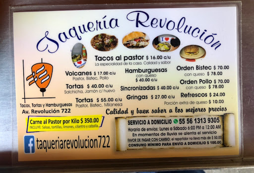 Tacos Revolución es un lugar que, aunque tiene una reputación sólida, no cumple con las expectativas que su fama promete. Los tacos, aunque correctos, no destacan por nada en particular; un sabor promedio que no justifica el hype que los rodea. Lo que realmente resta puntos a la experiencia es el estado del lugar. El ambiente es poco atractivo, con un local que se siente demasiado antiguo y descuidado.