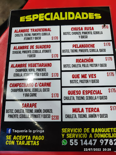 Read moreLa gringa... Una de las taquerias de Villa Coapa de tradición por sus tacos, con más de 25 años de servicio, con los tacos al pastor en horno no de piedra, sino al carbón que nos han hecho el momento a varios, los ya memorables alambres como el sarape, la mulita terca o el que me vez exquisitos, que por cierto ya han añadido a la carta varias combinaciones nuevas desde hace algún tiempo, las famosas gringas que no puedes pedir solo una. Todo el menú está bastante bien y la atención es muy buena por parte de todo el staff. Recomendable ampliamente si vives o andas por...