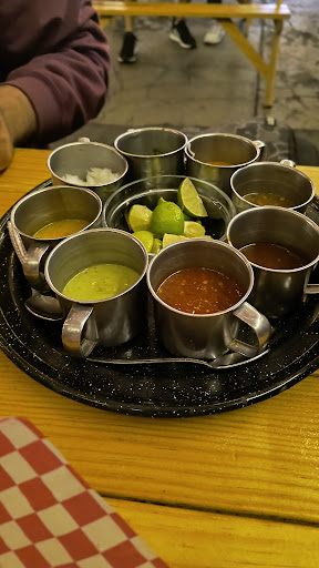Era buen lugar antes de la remodelación, lo que me gustó del lugar era la cantidad de salsas que ofrecían y las buenas porciones que manejaban. Pero fuimos hoy 22/10/24 a eso de las 16hrs y nada que ver. Musica horrible, comida sin sal, se pidió un guacamole y el cocinero que es nuevo escucho que nos quejamos porque no tenía sal y fue hasta la mesa y argumento que no le echaba sal porque un comensal se quejo, que no se pase. Al lado de la mesa que nos dieron habia carne cruda como unos 40k aproximadamente y en otra mesa cilantro picado en un papel, por lo que no saben respetar los espacios que son designados para el comensal. Pedimos dos tortas para empezar, las dos sumaban a lo mucho la cantidad de carne de una torta de las de antes, eso sí un pedazo grande de lechuga. Volviendo al tema de la carne no miento, era ridícula la porción de carne, un pedazo de lechuga y una untada de frijoles era todo lo que contenían las tortas, hasta parece que al cocinero le cobrarán el gas y la carne porque aparte estaba apenas cocida la carne y cero frita, por cierto ya cobran un extra por las tripas bien doraditas lo pueden ver en el menu jeje. Solo nos arrimaron dos salsa y a la mitad de su recipiente, habiendo otras que ofrecer, como una mango habanero que vimos, esto lo comento porque antes ofrecían seis salsas algo que destacar. La mesera distraída, posterior a las tortas se le solicitaron unos tacos y despues de como 20 minutos que no los traía se le pregunto y ni siquiera los tenía anotados en su libreta y obviamente no los había pedido al cocinero, se los cancelamos y nos retiramos. Era el lugar favorito de mi hijo pero sin dudar ya no...