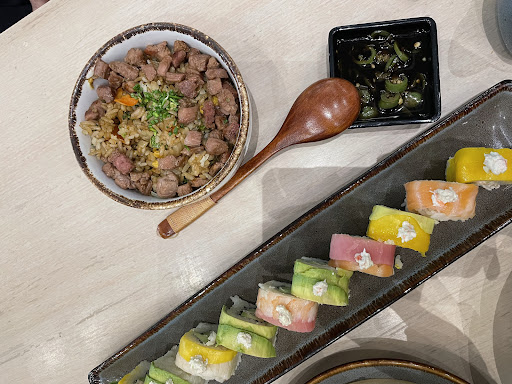 the vibe was there but it feels like it’s only worth because of the 2x1 promo they have. I personally did not like baby squid appetizer even though I love all types of seafood. The service was alright for only having 1 waiter so it could be better but he did the best he could in which i don’t judge him for. I sampled the teriyaki ramen but i fear that it lacked a depth of flavor so it was a bit mid i’d say. I enjoyed very much the dragon roll but the pink roll also...