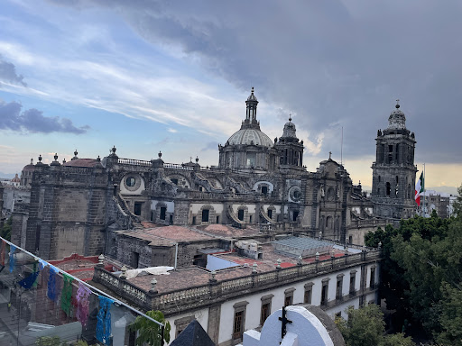 A short walk later we were back at Terraza Catedral, cocktails in front of us. This time we ordered the molcajete plate. It's the priciest dish on the menu, but there's so much delicious food in one bowl that two of us barely made it through, and only then because we didn't eat all of our vegetables. Mind you, "priciest" was still less expensive than most of the plates at countless other restaurants nearby. The traditional volcanic rock mortar comes to the table smoking hot and filled with strips of perfectly spiced and prepared pork, chicken, beef, cheese, cactus, and onion, as well as a large stack of fresh tortillas. It was easily our favorite meal in the city. The total bill for that monster plate, plus two cocktails each, was under $1000MXN.