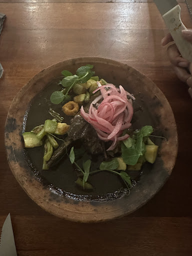 The service was great and the mezcal-based cocktails were delicious. Together with the ambient it seemed to lead us to a great experience. Kudos to the lady in charge of making fresh tortillas and a freshly mixed molcajete salsa. This was very special and tasty.