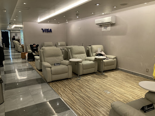 The place isn’t that big, and many airlines actually have a contract with this lounge. There was limited seating, but all seats were lazy boy type of single person sofas. Luckily, we went in early and noticed the place fill up very quickly. L We used the single shower room which was not only tiny but also filthy and lacking of basic equipment. There were non-disposable combs that had bundles of hairs, the basket to place personal items while showering had some gooey stuff in it, the towel provided had brown and black spots all over. There were no amenities other than the soap & shampoo, and no hair dryer even.