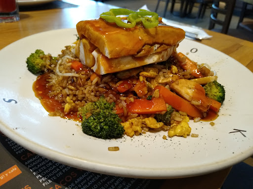 Read moreEl servicio bastante austero, la mesera te toma la orden, te lleva tus platos y no la vuelves a ver, nos entrega las bebidas sin hielo y con los vasos sucios; pedí una orden de vegetales a la plancha, nos los entregaron muy rápido pero estaban casi congelados por lo que los regresamos para que los calentaran, la arrachera toks con un exceso de salsa Maggie y aceite agregando que las porciones son bastante pequeñas, por último el sándwich que ordenamos no tenía los ingredientes que decía en la carta, el cual nos pareció el más rescatable de los 3 platillos; agregando que el servicio de estacionamiento no tiene convenio por lo que no estuve en el restaurante ni 1 hora y pagué 30 pesos, lo cual me parece exagerado. En general bastante mal la experiencia en todos los aspectos, definitivamente no...