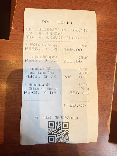 Read moreEl día de hoy decidimos comer en esta sucursal ya que nos quedaba de paso para algunas actividades que teníamos que hacer, lamentablemente el servicio desde la recepción fue muy mala, llegamos y había fila aproximadamente de 3 personas y no estaba nadie pendiente del ingreso, le pregunté a la cajera si ella podía apoyarnos y lo hizo, pero pues ella tenía fila en caja también. Por fin nos pasaron y tardaron 20 min en montarnos la mesa, tuve que preguntarles a varias meseras quien atendía nuestra mesa para que nos tomara la orden, por fin nos la tomaron y nos llevaron las sopas pero sin bebidas, tardaron nuevamente en llevarlas. Para el segundo tiempo tardaron nuevamente 20 min, realmente tomamos el tiempo porque ya estábamos molestos, me levanté y tuve que buscar a la encargada en turno, le comenté la situación y fue a checar que había pasado con los platillos, después de unos 5 min los sacó el Runner de la cocina y nos los entregó, lamentablemente el platillo que pedí estaba mal también, pedí el Salmón a las finas hierbas y estaba muy muy dorado como si lo hubieran dejado de más en la salamandra, estaba dorado y la mantequilla con las finas hierbas estaban totalmente seca ya que se había consumido por la salamandra, pedí un poco más de esa mezcla porque estaba seco el salmón. Mi esposo pidió una parrilla y se tardaron otros 10 min en llevarnos las tortillas que habíamos pedido desde un inicio, también tuve que levantarme a pedirlas, todo estuvo muy mal, la única que se salva fue la cajera, ella trató de ayudar, pero no depende de ella. Es la última vez que voy a esta sucursal, ojalá puedan reportar a la mesera y a la encargada que no están atentas al servicio. Adjunto...