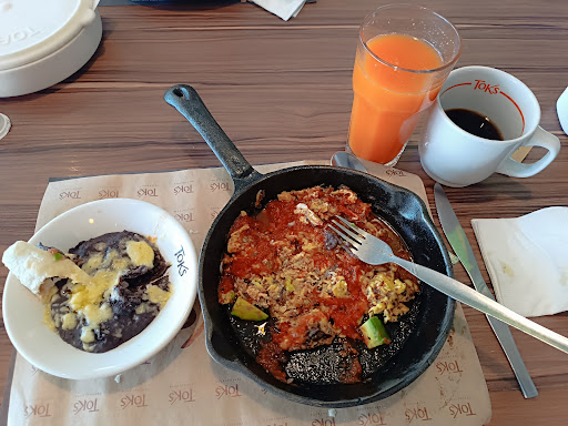 Para sus precios, que no son económicos, siento que me quedaron a deber, las porciones son pequeñas, si eres de buen diente, mejor ve a un restaurante en donde sean más generosos. Actualización: sigo pensando que Toks se rige bajo la ley del menor esfuerzo, hoy pedí un caldo Tlalpeño, cuya salsa de tomate sabía a lata, de plato fuerte pedí un taco turco para el cuál esperaba un aderezo turco, pero no, tuve que conformarme con una salsa verde mexicana, lo más destacable fueron las papas que venían de guarnición. Mis acompañantes pidieron enchiladas de mole y comentaron que sus órdenes fueron muy pequeñas. Conclusión hay lugares con comida mucho más rica y...