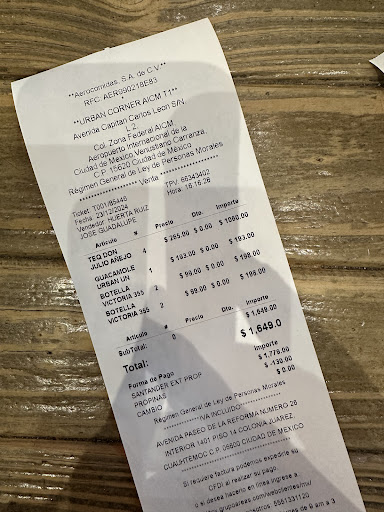 At the Mexico City Terminal one airport bought an expensive roast beef sandwich at the Urban Corner to share with my Wife on the flight back to Phoenix. Both the bun and the beef were dry and tasteless as my Wife and I shared the sandwich on the flight a few hours after the purchase. After arriving at Phoenix and then making the two hour drive home, I became sick (thankfully it did not happen on the plane) and I remained sick for another week. Was it the roast beef sandwich? The symptoms started a few hours after eating it,, so I'll leave the conclusion at that. ///// 3/8/24 Addition to comments; I apologize for the slow response to the reply from Urban Corner. I did not see their response in a gmail until today and I could not find anyway to personally respond to the Urban Edge except on this review. . I do not like to leave negative reviews, but whether it was this sandwich, or something else, returning home to being sick was our only, and a very low point to a great week that we spent in Puebla, Mexico. We purchased the roast beef sandwich the afternoon of January 23rd, but in the Urban Corner's defense we did not eat it until a few hours later when we were on the plane, though the sandwich was kept wrapped and in a bag until we ate it. We did have fruit and tea that morning in Puebla about 12 hours before we became sick back in Arizona, so as I said in my first review, I cannot definitely say how we became sick except that it started a few hours after we ate...