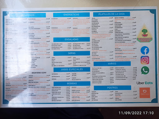 Read moreEs un restaurante aunque pequeño pero limpio y con muy buena atención. Sirven comida vegetariana muy variada. Es bastante agradable comer ahí porque hay ambientación con una persona que toca música con un teclado. Las porciones son bien servidas. Venden pan integral. Las ensaladas son muy buenas. Lo único que podría sugerir es que el pan no lo embolsen con las manos, es muy desagradable ya que la persona cobra el dinero y maneja el pan con las manos sucias. También sería bueno que variaran las salsas de jitomate, que además son bastante insípidas, quizá por salsa verde, de pasilla, guajillo, o como sea pero no todo el tiempo la misma salsa de jitomate para todo tipo de tortas. El precio muy accesible. Ojalá que abrieran...