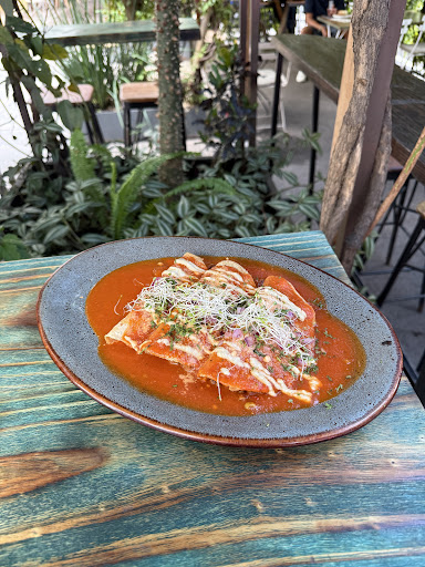 Read moreWe’ve been here twice. First time we ended up here because it was quit late and everything els was closed. We ordered stuffed avocado and enchiladas. I could taste right away that the setas they used were expired and not well to eat anymore. Even though they tried to cover that with to many flavours. My boyfriend had stomach issues that same evening and end up on the toilet. Also there were loudly, smoking people there. Which bothered us a lot. As a non smoker you don’t want to taste cigarettes while eating. Second time we went here, is JUST because it’s so near to the house. We were in the hurry. So we decided to give an other try. We order again enchiladas. Burger and potatoes. Setas 🍄 were very dry. And not because they were cooked to long but because they were old. And they had something that cracked as sand between your teeths. Burger was burned on one side. Cutting out the burned piece and almost nothing was left from the patty. Potatoes were very good! But it’s so expensive. A mini portion of potatoes is 90 pesos. And they call it a BIG portion. In short we paid around 500 pesos for a very low quality of food.