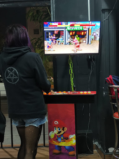 El lugar está súper cómodo, buen ambiente y excelente música, el trato es de lo mejor, tienes acceso libre a jugar con el equipo que más te guste, desde algo mucho muy retro, algo noventero hasta lo actual, los baños muy limpios y en general el establecimiento lo está, hay variedad de hamburguesas y están muy bien de sabor nosotros pedimos la que trae guacamole, tenía personalmente ganas de una chilli pero se había acabado, para la próxima espero poder probarla, el gasto que indico de entre $500 o $600 por persona es porque la verdad le entramos con fe a las hamburguesas, boneless y papás a la francesa que le echan como hierbitas encima y están muy buena nada grasosas ni saladas, muy recomendables, y aparte nos fuimos como diría Otto Mann "nos fuimos como cola de perro" pero es muy económico todo, el tarro de cerveza está entre $75 y 80 de a litro fría y nada quemada, la ventaja que había León, y por parte del personal todos muy buena onda, te atienden súper rápido se persibe en todo momento una excelente vibra, un lugar ampliamente recomendado, no duden...