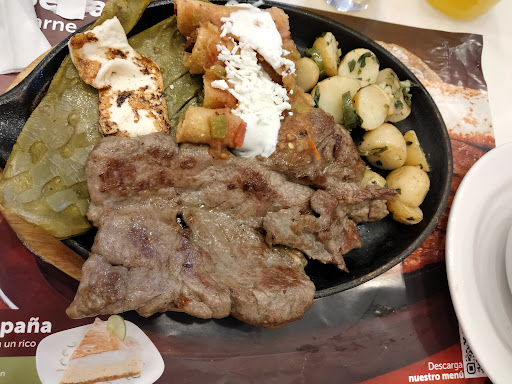 Un excelente servicio por parte de la mesera que nos atendió. Sugirió los alimentos del día y promociones, siempre al tanto de si se requería algo y el tiempo de espera fue muy eficiente que parecía casi de inmediato. Los platillos son muy ricos, aunque en lo personal no consumo mucha sal pero de ahí en fuera todo excelente. Los precios lo valen con los platillos, el espacio del lugar y el trato. Cuentan con acceso de INCAPACITADOS y también al terminar un buen desayuno, comida o cena puedes aprovechar a pasear o visitar la plaza de las estrellas. Cuentan con proceso de sanitizacion y medidas de higiene por cuestiones de pandemia. En la foto se muestran Arrachera norteña con complementos de la Asada (las papas son picosas por el chile), Arrachera norteña con sus propios complementos, guacamole y pay de limón.