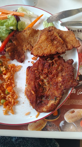 Read moreMi experiencia inicia en la entrada, para iniciar un restaurante amplio y limpio,una vez me vio la señora inmediatamente me llevo a una mesa y me senté, fui a las 5 de la tarde y el restaurante estaba a punto de estallar y colapsar por las inconmensurables olas de gente que llegaban ya que la señorita de la entrada estaba dejando pasar gente a diestra y siniestra a demás había una parte del restaurante que no se ocupaba y solo se escuchaba que adentro de esa pequeña sección se la estaban pasando bomba mientras que en el demás restaurante parecía una bomba de gente y gracias a eso se tardaron en atenderme como 50 minutos, una vez llegaron a tomarme la orden pedi una arrachera junto una sopa se tardo en llegar mi comida como 40 minutos una vez llegó mi comida procedí a aglutinar, una queja es que había un poco de arrachera en mi pellejo y estaba muy sobre cocida y para críticos culinarios como yo pues no, terminado de consumir mis sagrados alimentos procedí a pedir café con donas, mi café llegó rápido pero las donas es otra historia ya que las pedí a eso de las 7 y parece que estaban sembrando y cultivando los mismísimos ingredientes así que le pregunté a la señora que que pez con mis donas así que me invento que ya había un paquete de donas listo pero que estaban duras entonces que como era su cliente favorito ordenó al mismísimo chef que parará todos los pedidos para concentrarce únicamente en prepararme otras donas exclusivamente para mí eso me asombro pues no había escuchado semejante choricuento más grande en mi vida así que las termine cancelando, al final una experiencia culinaria agradable pero el servicio lamentable, los bolillos que dan al principio una reverenda...