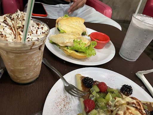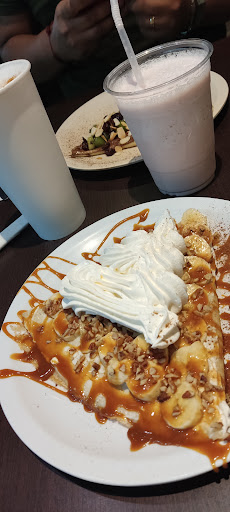 La atención es un poco lenta, y hay pocas meseras para el número de mesas qué tienen. Tardaron un poco en llegar a entregarnos la carta. La distancia de los sillones conforme a las mesas es algo incomoda ya que los sillones son más bajos. Me parece que deberían preguntar la preferencia de los clientes acerca del jamón serrano ya que me desagrado bastante el que lo calentaran, el frappe de chocomenta no me pareció la gran cosa, la menta la dan asentada en la parte de abajo no es revuelta , en ambos frappes había hielos sin triturar. Y lo peor esq den vasos desechables siendo que fue para comer en el restaurante, cosa que no ayuda al medio ambiente. La propina me comentaron que no se las proporcionan si se paga vía TC lo cual deberían buscar una solución ya que somos varios los que no cuentan con efectivo adicional para dejar. El helado en las crepas es de buena calidad al igual que los productos para elaborar los frappes y smoothies. El lugar tiene potencial pero son muchos detalles los que...