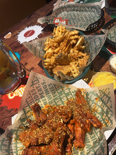 Tuve una experiencia muy desagradable y considero que no vale la pena gastar dinero aquí. Para empezar, la comida fue terrible: las alitas estaban extremadamente pequeñas y las papas “crispy” estaban chiclosas, claramente recalentadas en aceite. Y lo peor es que ni siquiera era un día de promoción; era un sábado.