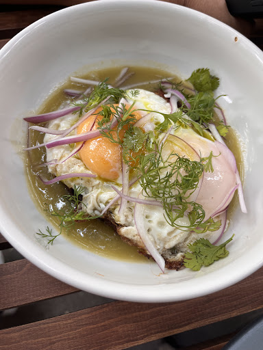Loved this place so much! Came with a group of 10 people for our last breakfast in CDMX, did not disappoint! One barista quickly helped us set up tables together, and he was SO patient with us while we were figuring out payment and tipping. There's outdoor and indoor seating, and it's a nice area. I ordered a strawberry matcha latte and huevos rotos - the huevos weren't my favorite but they were alright, but the matcha was so good! Vibes are really simple and sleek, would totally...