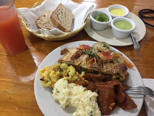 Being vegetarian and having read great reviews, was quite looking forward to the visit but it turned out to be rather disappointing. Opened in 1963, the state of the interiors makes it quite believable. The buffet spread upstairs (1-5 pm 132 pesos monday to friday, 147 on weekends) seemed rather unappetising so went back downstairs for a la carte. Service is attentive, portion sizes are huge, prices are ok, complimentary bread basket and butter , just the food was neither tasty nor spicy. All original mexican dishes, the meat replaced with just soya. No quinoa or anything more inspired or exotic. The mixed fruit juices were quite alright, my son liked his drink called Frutastica. My garlic and egg drop soup had some eggshells in it. Surprisingly the restaurant seems popular with the locals who perhaps want a break from eating meat. The place was nearly full at 2.30 pm on sunday. There are lots of ancient pictures of Hindu gods on the walls, no Indian dishes on the menu as such. There is an English menu card too upon request but does not have the prices mentioned on it. Am...
