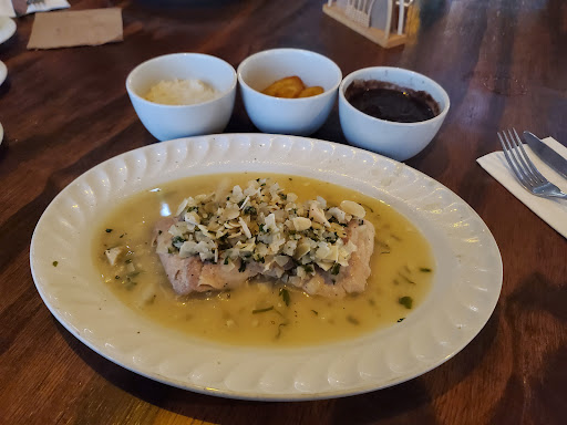 Para la entrada, las croquetas de jamón, estas son cremosas rellenas de jamón horneado con un sofrito de ajo y cebolla. Las clásicas de la isla. Imperdibles la ensalada cítrica, con lechuga sangría, supremas de naranja y toronja, nuez y queso azul, bañada de vinagreta de la casa, y la ensalada tropical con espinaca baby, mango fresco, arándano deshidratado y peperonccino, bañada de vinagreta de la casa. El filete de esmedregal cubierto en una salsa almendrada, sofrito con ajo, cebolla y hierbas mágicas y un clásico, el pollo frito, una jugosa pierna y muslo dorados, sazonados con la típica receta cubana de ajo y naranja agria.