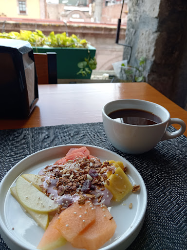 Read moreExcelente lugar para ir a desayunar o tomar un café. Me llevé una grata sorpresa al visitar el lugar, acudí a desayunar y todo estuvo perfecto. Para empezar la comida estuvo muy rica, pedí el paquete de desayuno que incluye fruta, jugo, café y un platillo. El platillo que escogí fueron chilaquiles verdes con pollo, francamente me sorprendió que la porción era enorme, eso lo agradecí, de sabor estaban ricos, aunque hubiese querido que picaran más, la porción de fruta y el jugo fueron pequeños pero compensa con el tamaño de los chilaquiles, el café era de olla y estaba rico, creo que como sugerencia deberían de tener la opción de café americano. El lugar es muy bonito, yo desayuné en la terraza, tiene una bonita vista y un ambiente agradable, está limpio y la decoración es padre, los sanitarios también están limpios, las sillas y mesas son altas pero cómodas. En cuanto a la atención es buena, creo que solo tienen un mesero, es amable y el tiempo de espera de los alimentos si buen no es super rápido creo que es acorde, tomando en cuenta que los alimentos se preparan al momento. No cuenta con estacionamiento. En general lo recomiendo muchísimo si quieres desayunar en un lugar céntrico y con...