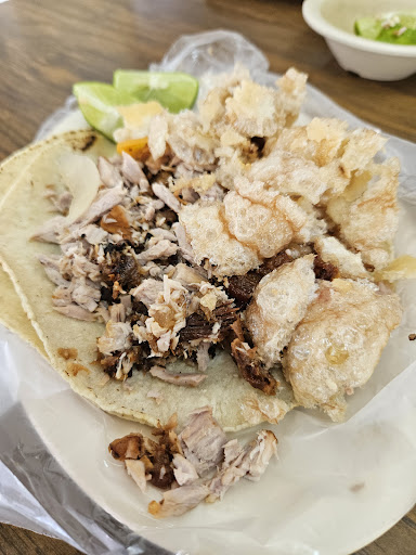 An enduring establishment, well-known in the area! While the place exuded cleanliness, it seemed more inclined towards catering to those seeking to purchase carnitas in bulk for takeaway. Our order for carnitas tacos, specifically requesting maciza and costilla cuts, accompanied by some added chicharrón for an extra crunch, was met with a slight disappointment. The limited array of salsas and toppings resulted in somewhat dry bites. Nonetheless, the taste of the carnitas itself was commendable, showcasing a flavorful profile. However, there's room for improvement when it comes to offering a wider variety of toppings to elevate the overall...