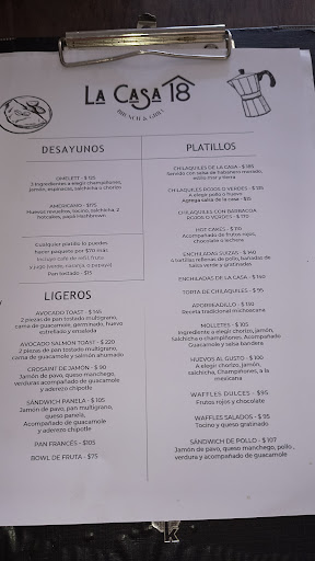Read moreEl día de ayer acudimos a cenar mi esposo y yo a la Casa 18, quiero ampliamente recomendarles el platillo de enchiladas suizas, y de bebidas el mojito clásico ó el mojito de frutos rojos que fueron las que nosotros pedimos. Los platillos estaban deliciosos aparte de que la atención que nos otorgaron en el restaurante fue muy buena. Me da mucho gusto que podamos contar en Lazaro con un restaurante en donde la atención al cliente, y él excelente sazón de la comida van de la mano. Sin dudar los recomiendo ampliamente. Muchas gracias sigan con esa...