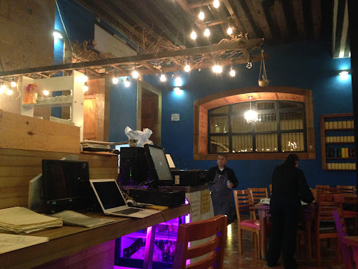 Their main room is really nice, a mix match between wood and a splendid blue. The menu allows you to mix local dishes (for example corundas, which are local tamales) with Mexican and international ones. Burgers and baguettes are delicioooous ! I personally tried the "Mexican baguette" which has "arrachera" (meat), probably the best one I've eaten so far. Portions are really huge, so be careful to only take one main course if you're not that hungry. Waiters are really sweet and attentive. And sometimes, there is a concert outside below the arcades. Conclusion: just go, you...