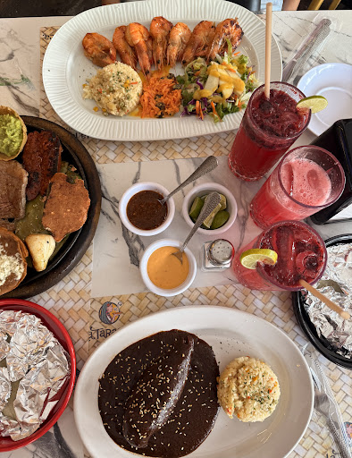 This place was a no go for me! I was craving mole, so I decided to head to this place and give their mole a try. Upon arrival we were sat at a table next to the walk way so we decided to move tables and the waitress’ automatically gave us an attitude. (It wasn’t too busy so I figured it was not a problem) After a waitress took our order the waiter came out with our drinks. I was handed a mixed berry lemonade when I asked for a regular lemonade. I informed the waiter and he switched it out for a lemonade he had on his serving plate. The waiter informed the waitress and she was quick told him I was wrong and that’s what I ordered. He immediately removed my drink and left me with the one I was first placed with. The waitress was trying to argue about me being wrong and to avoid further discussion I told her it was fine to just leave the drink. The waitress unhappy with the prior incident would not even walk by our table to ask if we needed anything. Now I am only speaking on behalf of the mole plate: The chicken was very dry and the “tortillas” tasted and felt like cardboard. The mole was missing so much flavor (the best thing on my plate was probably the rice). Although, the presentation was great the actual taste was not so much (for the mole plate). Would not return on a...