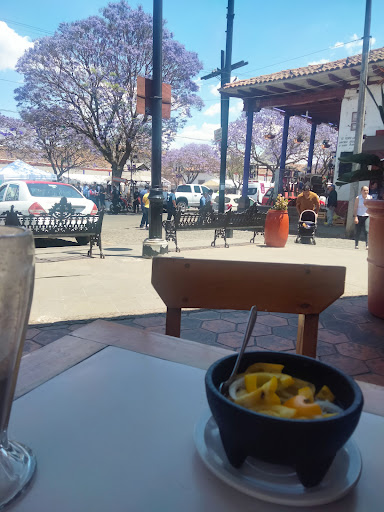 Read moreEl lugar es pequeño pero agradable. Tiene mesas afuera donde puedes ver la plaza principal y otras pocas en la parte de adentro. La comida tiene buen sabor, en mi caso se pidió chilaquiles verdes los cuales estaban buenos, solamente los frijoles que los acompañaban...