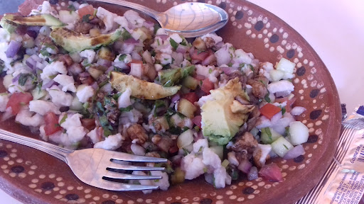 Read moreLa comida está muy buena. Algunas opciones del menú me parecieron costosas, como las tostadas o tacos. Uno de los que nos atendió, también era el encargado de cobrar o dar el cambio; lo tuve frente a mí todo el tiempo y nunca vi que se lavara las manos. Daba el cambio y luego servía las tostadas en los recipientes, acarreaba los platos a las mesas, etc. Para ser honesto, me dio un poco de asco. Uno de los meseros, cuando nos llevó la cuenta nos recordó amablemente que el total de la misma no tenía propina y que nos sugería el 10%. Cuando regresó por el dinero, nos preguntó se del dinero que le habíamos dado se cobraba la propina. La verdad es que si pensábamos dejar propina, pero la idea de que estuvieran exigiéndola nos molestó un poco. Al final la propina es opcional y quien debe pagar el sueldo es el dueño del establecimiento, no...