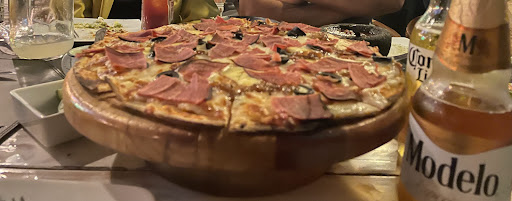 Cuenta con una carta variada integrado: pastas, pizza, y carne corte grill, mariscos, hamburguesas, etc.