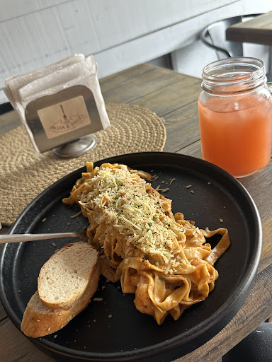 MI EXPERIENCIA El lugar es agradable, no cuenta con estacionamiento propio del establecimiento así que eso puede afectar un poco, yo pedí una pasta a la diabla ya que me gusta el picante, la salsa de mi espagueti estuvo muy rica, pero los camarones sinceramente le restaron demasiados puntos a mi comida, no estaban bien pelados por lo tanto no me agradaba sentir la textura de la cáscara en mi boca junto con mi espagueti, 😣😣 la bebida estuvo muy bien bastante resfrescante si vas en un día soleado es una bebida dulce pero no empalagosa, el servicio estuvo muy bien, realmente fueron mis atentos y la demora de mi platillo fue dentro de lo normal 15-20 minutos, ¿regresaría? No sé realmente me pone en duda ya que era una de mis pastas favoritas pero realmente me dejó muy mal sabor de boca el no poder disfrutar 100% cada bocado sin tener que estar pelando los...