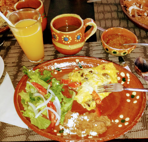 En general el ambiente es tranquilo, o eso alcanzamos a percibir. Las mesas y sillas son equípales, lo digo por que algunas personas no encuentran cómodo dicho mobiliario. Las superficies de la mesa se encontraba pegajosa y las moscas abundaban, a tal grado que una calló dentro de nuestra bebida. Pedimos dos platos; el primero fue un aguachile de picaña, el corte de la picaña era grueso y la carne venía precocida en una muy abundante salsa negra. El segundo plato pedimos unos sopes de pato…. Gran error! La masa estaba cruda, el pato muy muy salado y la decoración…. Un puñado de germen no es decorativo.