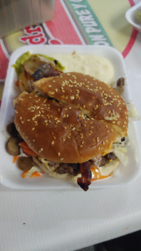 Read moreBuenas hamburguesas, la carta tiene una gran variedad de este alimento, desde vegetariana hasta de mariscos. ( con piña, salchicha, carne adobada.......... Entre varios ingredientes para escoger). Como extra, te llevan a la mesa un plato con frijoles refritos acompañados de totopos. Además tu hamburguesa viene acompañada de puré de papa y un sopecito de guacamole. También tienen hot dog. Estos últimos no tuve la oportunidad...
