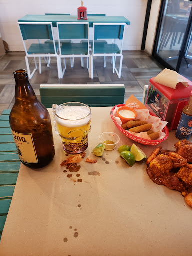 Read moreEl concepto de comer sobre la mesa sin platos ni cubiertos es divertido, los camarones tienen un gran sabor, los aros de cebolla y aderezos son buenísimos, pero sin duda lo mejor son las mezcaladas, la atención es...
