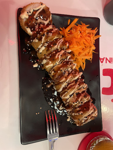 Read moreHay tres cosas que quiero mencionar: 1.- creo que nadamás ir una vez, si pides un maki con queso crema y además pides el kushiague de queso crema. Te acabarás comiendo aproximadamente la barra entera de queso crema 2.- los Makis están más grandes que en otros lugares, además de que están muy rellenitos, mi favorito siendo el gallero gratinado, lo mejor del caso es que tarda mucho menos que otros lugares (incluso con el local lleno), el agua de horchata es de las mejores que he probado 😋 3-(algo que para mí gusto es demasiado desagradable e incómodo) la "tazita"en la que sirven los palillos: es la retaguardia de una mujer en bikini, creo que sea quien sea que se le haya ocurrido crear la primera de esas tazas, se puede describir con una palabra que empieza con "p" y termina con...