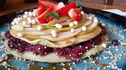 Read moreEl lugar en general tiene potencial, la comida esta súper rica, tienen combinaciones muy cool e interesantes, bebidas muy ricas. El lugar está súper bonito y muy agradable, solo que la atención es muy mala, solo he ido 3 veces al lugar y cada una de las veces me han atendido muy mal, sobre todo porque siempre se les olvida la comida que pides, la trean a destiempo, no les importa las especificaciones de algun platillo, además de que te tratan indiferente y de mala gana, afortunadamente la última vez que fui los meseros nos trataron amable pero aún así tardaron dos hrs en traernos todos nuestros alimentos.Pero en general es un buen lugar con excelente comida y ambiente. Recomiendo mucho los hotcakes de matcha y la hamburguesa...