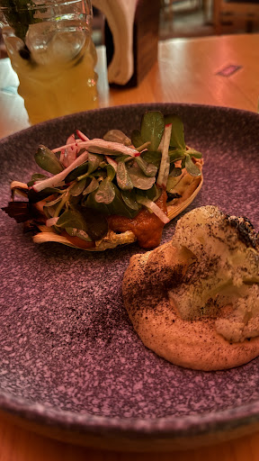 Relaxed, plant-filled restaurant serving creative seafood, tacos, meat dishes & desserts.