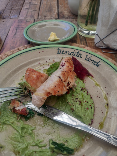 Tiendita Verde is truly an enjoyable start to your day. Sit in the garden and take in the lush green surroundings. A three-tier fountain provides a soothing splash along with the soft jazz played overhead. Dogs are welcome (please respect others by keeping them leashed and interactions with other dogs to a minimum - one lady let her dog crawl all over ours and even eat the food we laid out for him).