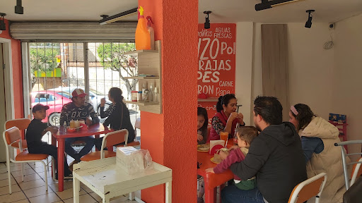 Sitio. El lugar tiene algunas mesas, y barra en pared con bancos, para comer. Difícilmente uno se queda sin lugar, ya que la atención es rápida, y eso mismo obliga al comensal a no hacer sobre mesa. El lugar es pequeño (como ya se menciono) pero en general es limpio, lleno de luz natural, lo cual le da espacio y a uno: la confianza de ver en donde come.