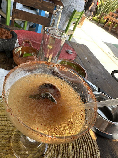 NO ME GUSTÓ, NO LO RECOMIENDO Y NO VUELVO A IR. Nos recibieron muy bien, pero lo malo es que no puedes elegir libremente el lugar. Reservamos con un día de anticipación y mínimo esperábamos un buen lugar y nos querían sentar al fondo donde literal está una “carpa”. Venimos desde la Ciudad de México y al menos esperábamos un buen lugar. Nos dieron el lugar que quisieron porque la mesa que pedimos no nos la quisieron dar (y en toda nuestra estancia jamás se ocupó esa mesa y ni siquiera estaba reservada) su pretexto fue esa mesa es para familia grande, y yo les dije que separaran las mesas porque las que estaban eran 3 chicas y sugerí que las separaran para que pudieran ocupar la otra pero NO NOS CEDIERON ESA MESA. Manejan bufet y la comida no estaba mal pero NO ESTÁ IMPRESIONANTE. Sabe igual que si la haces en casa. Te manejan bufet con refresco refil y bufet con “alcohol” pero es literal como 4 bebidas con alcohol. Y mixologia es costo extra. (Lo digo para que lo contemplen). Está como en $360 el bufet. Y siendo realistas primera y última vez que vengo. El calor se sentía horrible porque donde nos sentaron el techo era de lámina. Algo que rescato es que es Pet Friendly perooooo, mi perro se deshidrató por que estábamos en ese lugar de techo de lámina. EL LUGAR ES SÚPER PEQUEÑO. No tiene área de niños, no tiene área para caminar con niños ni perros, y nunca nos ofrecieron menú para nuestro perrito. Y por obvia razón para niños tampoco. Por suerte siempre cargo con sus croquetas sus platos y algo de agua fría porque pedí una botella de agua y me la dieron al tiempo. Tampoco nos mostraron una carta de comida y bebidas y menos de precios. El baño de mujeres huele demasiado a comida porque al parecer a lado está la cocina. No tienen estacionamiento. Yo pedí una margarita y literal era agua con hielo triturado y jarabe de tamarindo. Hay reseñas recomendando hasta a los meseros es porque YO VI COMO LOS MISMOS MESEROS PIDEN DEJAR RECOMENDACIÓN AL DARLES LA CUENTA. No porque de verdad lo sea. O le nazca al cliente recomendar. Es porque se los piden. Me sorprende que a mí no me lo pidieran y quiero yo creer que fue porque se notó mi disgusto desde que pedí una mesa en otro lugar más cómodo. SI LOS CLIENTES piden una mesa en otro lugar me parece acogedor que lo hagan porque venimos de fuera para pasarla bien! Para conocer! Para disfrutar! No para recibir groserías. Anexo foto de una bebida que pedí para mostrar que efectivamente fui al lugar NO LO HAGO POR MENTIR. Pero si piensas ir con niños no lo recomiendo y si vas con perros asegúrate de llevar comida, agua fría y un suero por si...