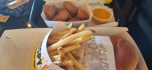 Read moreLlegamos unos minutos antes de la apertura, preguntamos y nos dijo la chica que a partir de las 12:30 abrían, faltaban unos 12 minutos para que fueran las 12:30,le dijimos a la chica que esperariamos la apertura, nos sentamos en una mesa exactamente enfrente de la caja cobradora, dieron las 12 :30 y seguían terminando de acomodar todo, más de repente ya se había formado una chica con otro señor y luego se formó otra persona, me levanté inmediatamente a formarme, cuando vi que ya estaba tomando orden de las primeras personas, me vió y no dijo nada. A lo que voy, si ya sabía que allí estábamos esperando que abrieran, ni siquiera se tomó la molestia de decirnos qué ya estaba tomando órdenes, siendo qué ya nos había visto llegar antes de todos los otros clientes y estábamos sentados exactamente enfrente de ella. En fin, fuera de eso, la atención de otra chica que nos llevo el pedido a la mesa, fue bastante buena, muy amable y atenta. Fué la primera vez que nos animamos a consumir hamburguesas de Carl's Jr., la comida en general cumple con lo esperado en un establecimiento de este tipo. Precios un poco elevados. Lo único que me gustó más de todo, es que tienen máquina de refrescos para que te sirvas...