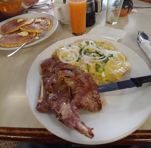 Read moreRestaurante que ofrece gran variedad de opciones de comida mexicana, tiene una carta muy extensa. La primera vez que los visité probé unos chilaquiles suizos que estaban deliciosos, super cremosos. Además de que sirven super bien las porciones, hay paquetes de desayunos que incluyen café, jugo/fruta y la verdad todo muy bien. El pan de elote está rico. Sin albergo, en una segunda visita probé la pancita y quedé un poco decepcionada, no estaba rica y súper espesa, daba un poco decepcionada asco, de ahí en fuera si recomiendo como buena opción de lugar para desayunar aunque no es tan barato como se piensa, le pongo 4 estrellas porque el estacionamiento es caótico, casi no hay espacio y hay que maniobrar muchísimo para entrar o salir, llega a ser...
