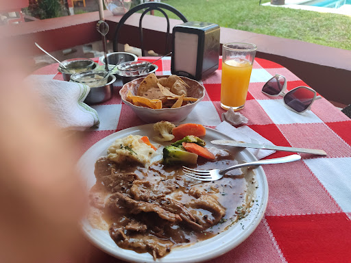 Read moreFuimos a desayunar 5 personas. El lugar es limpio aunque se ve viejo ya que no tiene buen mantenimiento, la alberca estaba muy sucia aún y cuando es de adorno. Los baños estaban mojados ya que se estaba cayendo el agua. Desayuné chilaquiles, los cuales estaban tan dulces que no se podían comer. Me ofrecieron salsa, cebolla pero lamentablemente nada le quitaba lo dulce, mi dijeron que si quería cambiar el platillo pero la verdad pensé que sería de igual calidad y no me quise arriesgar. El café es muy simple. El tiempo de espera para tomar la orden es de aproximadamente 5 a 10 min. El tiempo de espera para comer después de la orden es de 10 min. El servicio es bueno colocan los cubiertos en bolsita individual lo cual es muy bueno. Quizá no me tocó un buen platillo. Habrá que darle otra...
