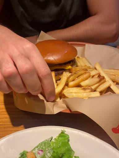 Casi me pido un corte pero que bueno que no lo hice, 😅 preferible pagar un lugar mejor quizá más caro pero donde sus comidas no sean tan comerciales. El ambiente se volvió burdo, desde la calidad de la atención de la hostess que básicamente te saluda por cortesía y te deja buscando donde sentarte… extrañare las deliciosas hamburguesas y ensaladas de antes.