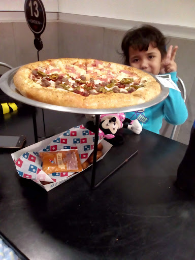 Ya tenía añisimos de no pedir una pizza, fácil unos 10/8 años Me quedé con el mismo disgusto. Años atrás que según no repartían a mi zona que está a 15 minutos, tuvimos que ir hasta ahí por la pizza, que por cierto horrible estaba. Y justo apenas volví a pedir ya que era la única que cierra tarde y quería limar asperezas y darle una segunda oportunidad, una PESIMA DECISIÓN para empezar asquerosa su pizza, llegó fría y dura😒 La pedí por Uber eats y trajeron a mi repartidora como trapo, le dijeron que según ya habia salido y que se fuera por que su repartidor (de Domino's) ya habia salido en camino (cosa totalmente falsa) la repartidora me lo comentó y me dijo que le mandara mensaje cuando la recibiera, fue a entregar pedidos y ya venia a mi domicilio, mi pizza llegó 1:45 minutos después de haberla pedido, la repartidora llegó a mi domicilio y sin mi pizza, y el que se supone que la traía ni sus luces, deje ir a la repartidora rogando a Dios que llegara mi pizza y justamente 1:45 minutos se tardó en llegar.