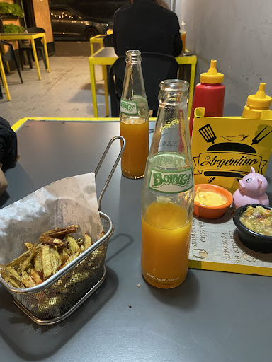 Probé la hamburguesa, las papas, los aros de cebolla y las alitas de pollo. Todo lo que probé va servido en un canasto de plástico, con papel de "El Argentino", también todo va acompañado de una especie de vinagreta que en particular a mi me gustó.
