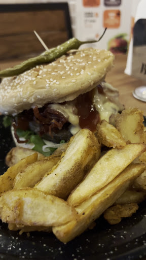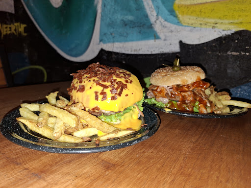Las hamburguesas tienen muy buen sabor y su tamaña es muy bueno; Además de contar con una carne deliciosa y sabrosa bien lograda ; las papas también tienen un sabor excepcional. El pan es suave y fresco , y la verdura también esta fresca . Si te gusta el picante, no puedes dejar de probar las hamburguesas con chiles serranos pasados en la parrilla, que le dan un sabor único. La única desventaja es el humo de la brasa, que puede molestar un poco, haciendo que hasta los ojos te lloren. Sin embargo, si estás buscando un lugar donde saciar tu antojo de hamburguesas, este es el lugar indicado. También cuenta con una boutique al interior que tiene prensas Cool , en especial me gustaron las camisas hawaianas y algunas playeras de cómics . Lo recomiendo...